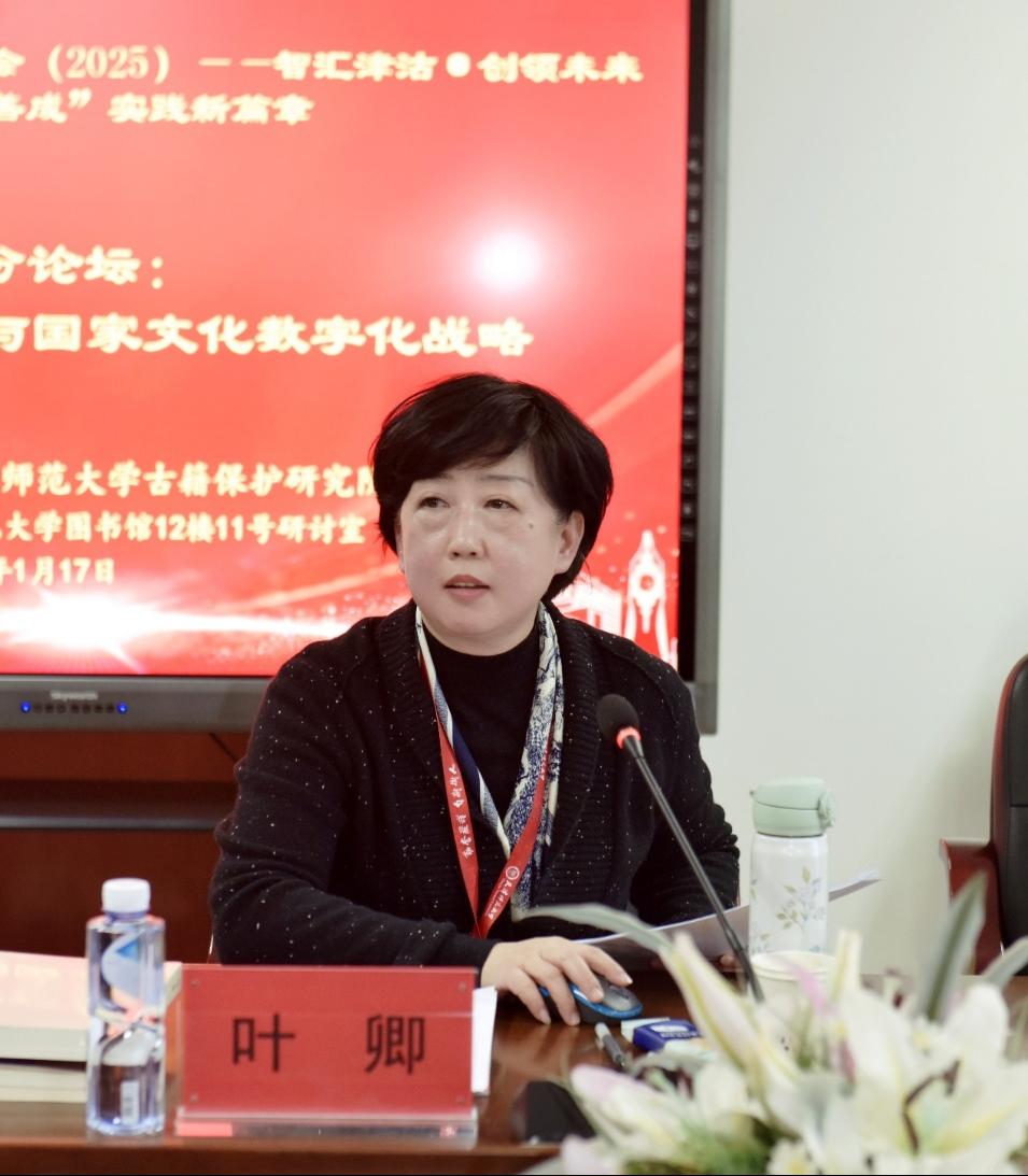 天津图书馆副馆长、天津市古籍保护中心副主任叶卿研究馆员作《从卷轴到云端 从典藏到共享——古籍数字化与数据资源利用》报告,从重点项目、共建平台、技术标准、合作模式四个维度介绍了天津图书馆古籍数字资源建设进展。