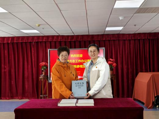 活动伊始,市档案馆一行首先参观了古保院,围绕相关业务合作事宜开展现场交流探讨。随后,市档案馆地方志工作办公室同仁向古保院捐赠了《天津年鉴(2023)》《天津年鉴(2024)》《天津市志·老干部工作志》及《胜利烽火》等多部珍贵的地方志文献及史料书籍,为古保院相关研究工作提供了重要资料支撑。